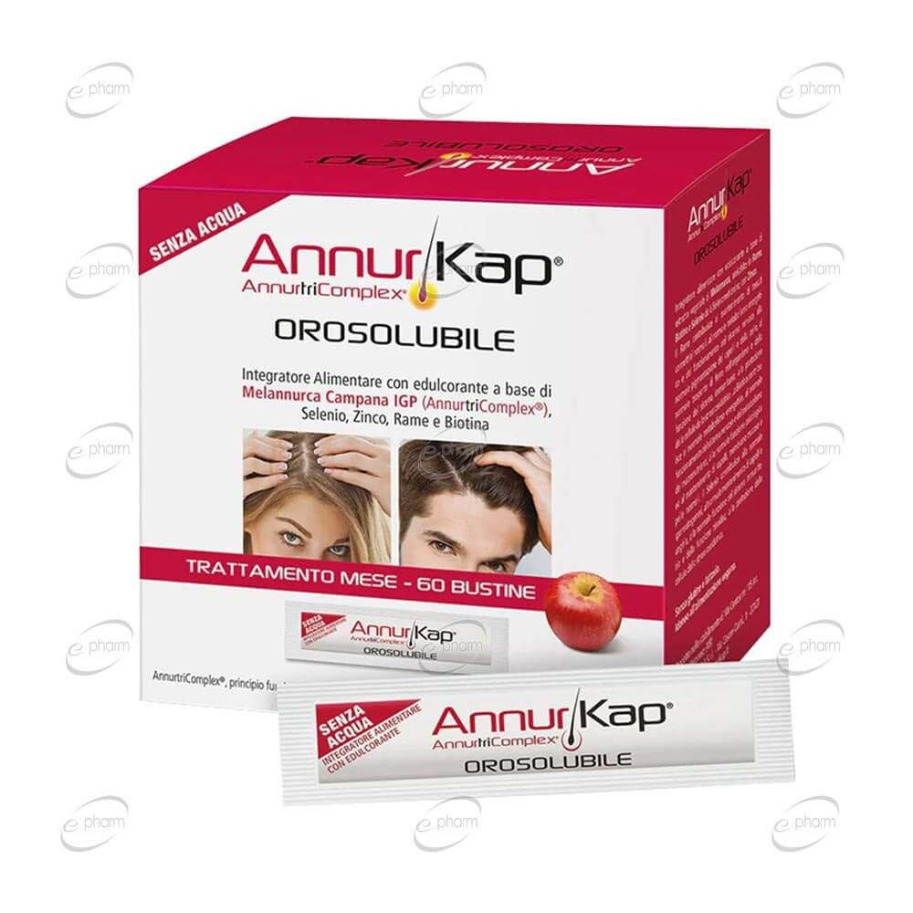 AnnurKap Kompleks, saçın ve saç köklerinin (foliküllerin) normal sağlığını desteklemeye yardımcı olan, elma aromalı tek doz saşeler halinde sunulan bir besin takviyesidir.